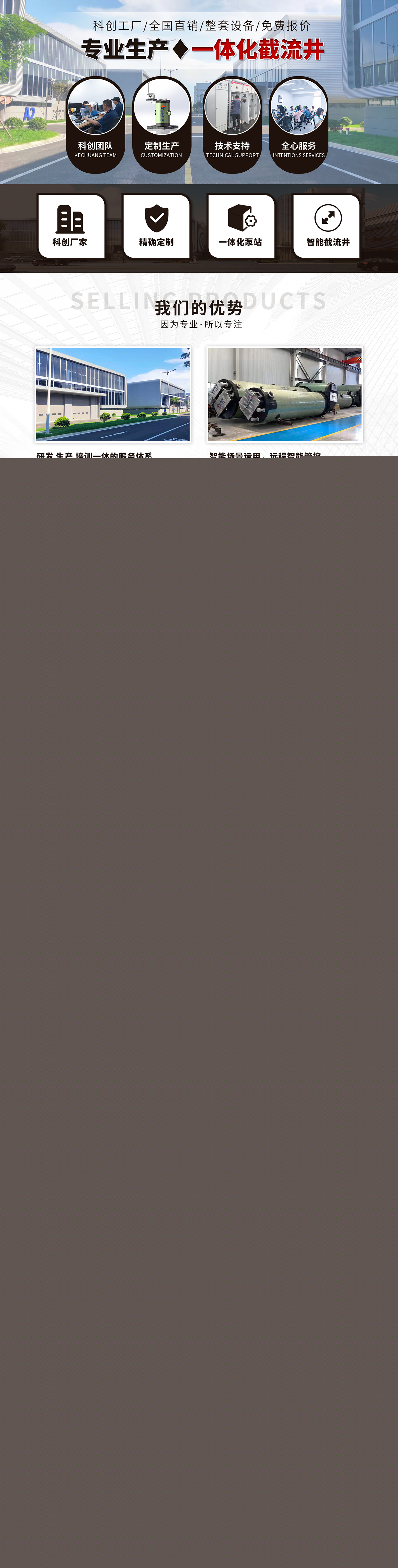 智能一體化雨污截流井,作為城市排水系統中的一項先進技術設施,智能分流井充分體現了現代排水技術的效果與智能化水平。以下是其具體功能的詳細闡述:初雨限流、晴天截流、大雨直排、防止倒灌。