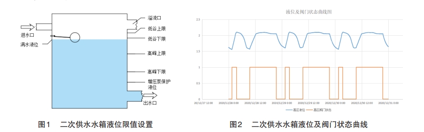 精準化控制的原理就是,將水箱進水閥門改造為可遠程控制閥門,在用水高峰期關(guān)閉進水閥門,使用水箱中儲存的水給高層用戶供水,避免用水高峰期水箱進水閥門打開給管網(wǎng)壓力帶來的損失,從而改善直供用戶用水質(zhì)量,在用水低谷期打開供水閥門給二次供水水箱補水,通過這種方式來合理利用水廠產(chǎn)能,實現(xiàn)用水平衡、穩(wěn)定管網(wǎng)壓力、節(jié)能降耗。