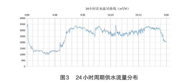 水廠的產(chǎn)能是17萬m天,用水主要集中在24:00點前,如果使二次供水水箱在每日0點后補水,將會在-定程度上緩解白天供水壓力。