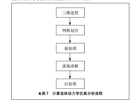 一體化預制泵站內部的流態優劣取決于污水泵進水口的入流條件。在污水泵提升污水時,應用計算流體動力學方法分析一體化預制泵站筒體內部的流場,以此來觀察泵站的運行流態。筆者采用國際上運用廣泛的 ANSYS 有限元分析軟件,對一體化預制泵站進行計算流體動力學仿真分析,過程主要包括三維造型、網格劃分、前處理、流場求解、后處理五個階段!。計算流體動力學仿真分析流程如圖2所示。