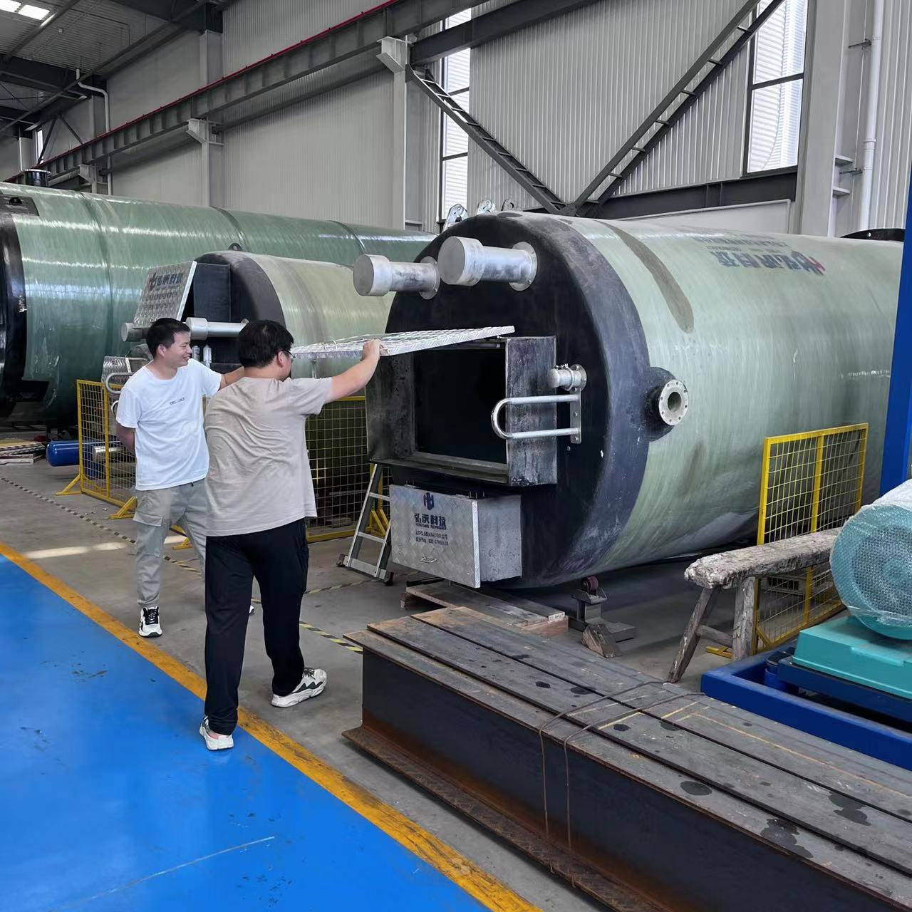 泵站名字中的“玻璃鋼”指的是一種新型材料,因?yàn)閺?qiáng)度高、堅(jiān)固耐用,而和不銹鋼一起成為了泵站的常用筒體材料。弘泱科技采用的玻璃鋼筒體,由電腦控制一次成型,薄厚均勻,使用壽命長(zhǎng)又綠色環(huán)保,所以受到了許多用戶的歡迎。