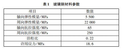 一體化預(yù)制泵站的應(yīng)力由筒底至筒頂逐漸減小,其應(yīng)變則逐漸增大。隨著工作水位和安裝高度的上升,簡(jiǎn)體最大應(yīng)力下降。隨著安裝高度的上升,簡(jiǎn)體最大應(yīng)變減小!。一體化預(yù)制泵站的主要原材料為玻璃鋼,因此一體化預(yù)制泵站的剛度分析主要是針對(duì)玻璃鋼筒體的剛度分析。玻璃鋼材料參數(shù)見(jiàn)表1。筆者以粉質(zhì)黏土進(jìn)行土壓力的計(jì)算。