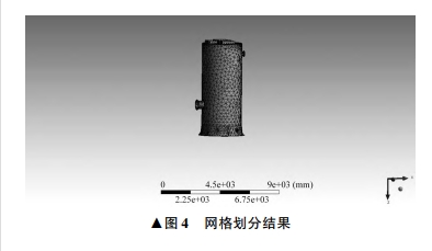 對(duì)一體化預(yù)制泵站進(jìn)行實(shí)測(cè)后,使用SolidWorks三維軟件對(duì)實(shí)物泵站進(jìn)行建模,三維模型如圖2所示有限元分析模型如圖3所示。對(duì)結(jié)構(gòu)部件進(jìn)行自適應(yīng)網(wǎng)格劃分,網(wǎng)格劃分結(jié)果如圖4所示。