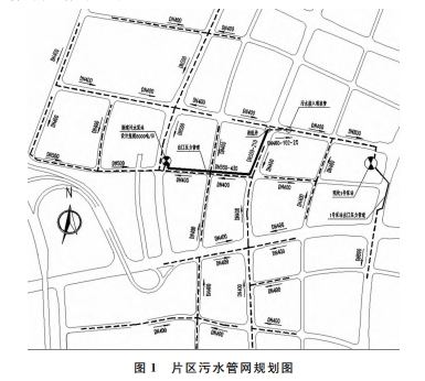 案例項目位于泉州市,為污水管網完善項目。根據污水管網規劃,該片區污水無法通過重力管道排放于現狀1號泵站,需經過污水泵站提升后排人市政重力管道,再匯人現狀1號泵站。由于該片區較低點可用建設用地緊張,無法建設傳統污水泵站,方案規劃時考慮采用占地面積較小的一體化泵站。污水管網規劃如圖1所示。