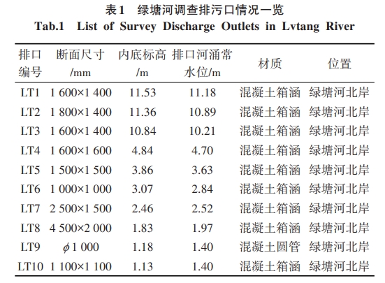 據潮汐數(shù)據,湛江港潮汐為不規(guī)則半日潮,每天有兩次高潮和兩次低潮,潮差為1~2m,平均高潮位為3.51 m(國家85高程系,下同),歷年最高潮位為 8.0 m。由于綠塘河終點與海灣直接連通,且排海口未設置防倒灌閘門及排澇設施,綠塘河的水位受潮汐影響較大,尤其是LT6~LT10排污口,幾乎每天在高潮位時存在河水倒灌的情況。