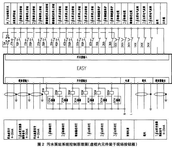 圖2是以EASY構成的小型污水提升泵站電氣控制系統原理圖。