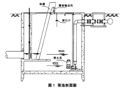 那么,有沒有辦法使小型污水提升泵站的電氣控制系統在保證安全可靠運行的前提下,又能降低投資呢?有!那就是采用EASY取代PLC、取消上位機并由EASY.以通訊方式將所有信息傳送到上一級工作站如污水處理廠中控室,由上一級工作站代償小型污水提升泵站上位機的作用。下面,就以如圖1所示的泵站為例介紹如何通過EASY實現小型污水提升泵站的控制。泵站的主要工藝設備包括:格柵2臺、螺旋輸送機1臺、潛水泵3臺(2用1備)。