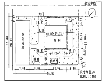 本立交雨水泵站位于北京市豐臺區(qū)杜家坎鐵路立交西南側,東鄰京廣鐵路,北鄰鐵路立交西南側橋欄桿,南側圍墻外為鐵路局養(yǎng)護隊住房,西側為泵站出口,與現(xiàn)況公路相接,占地 792m',建筑面積 310m?其主要建筑物為雨水泵房,采用半地下式;地上部分為磚混結構,地下部分為鋼筋砼結構,長11.2m,寬11.1m,至底面深9.6m,工程總平面布置見圖 1