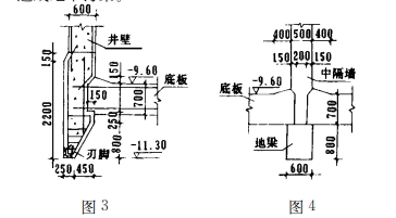 (4)凹槽 凹槽位于刃腳的上方,使沉井底板和井壁能更好地連結,如圖3所示。